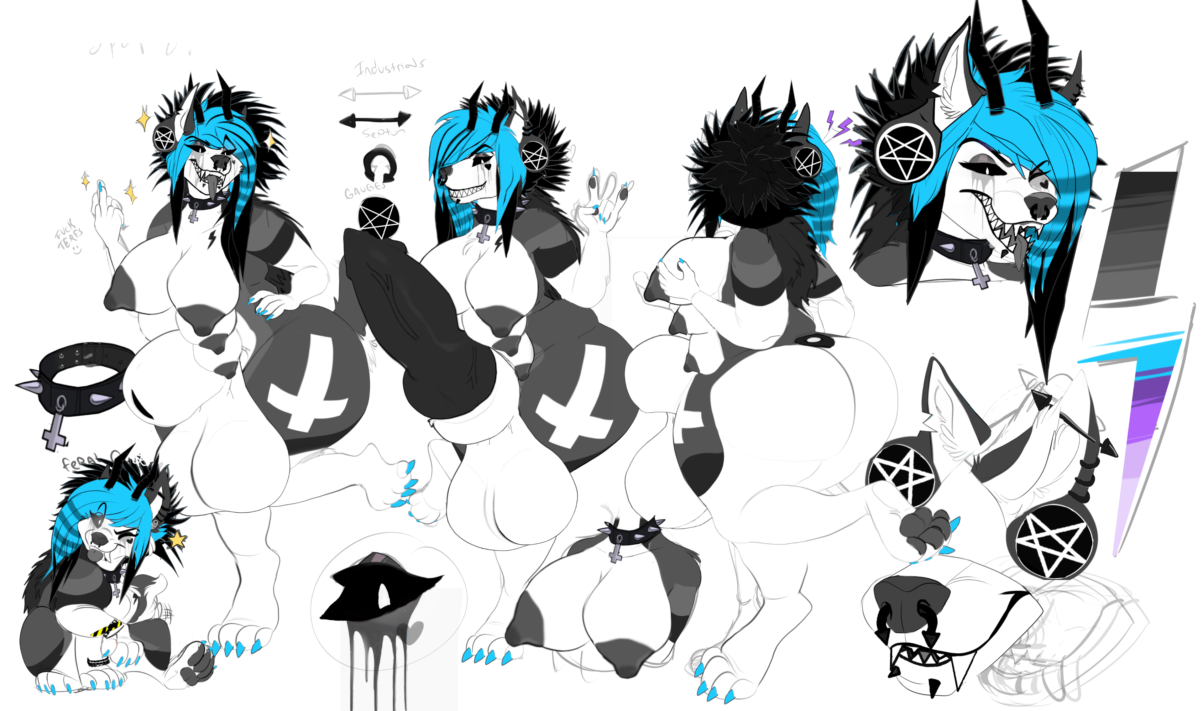 • Massive fluffy tail, goatlike horns, occult markings glowing across her fur